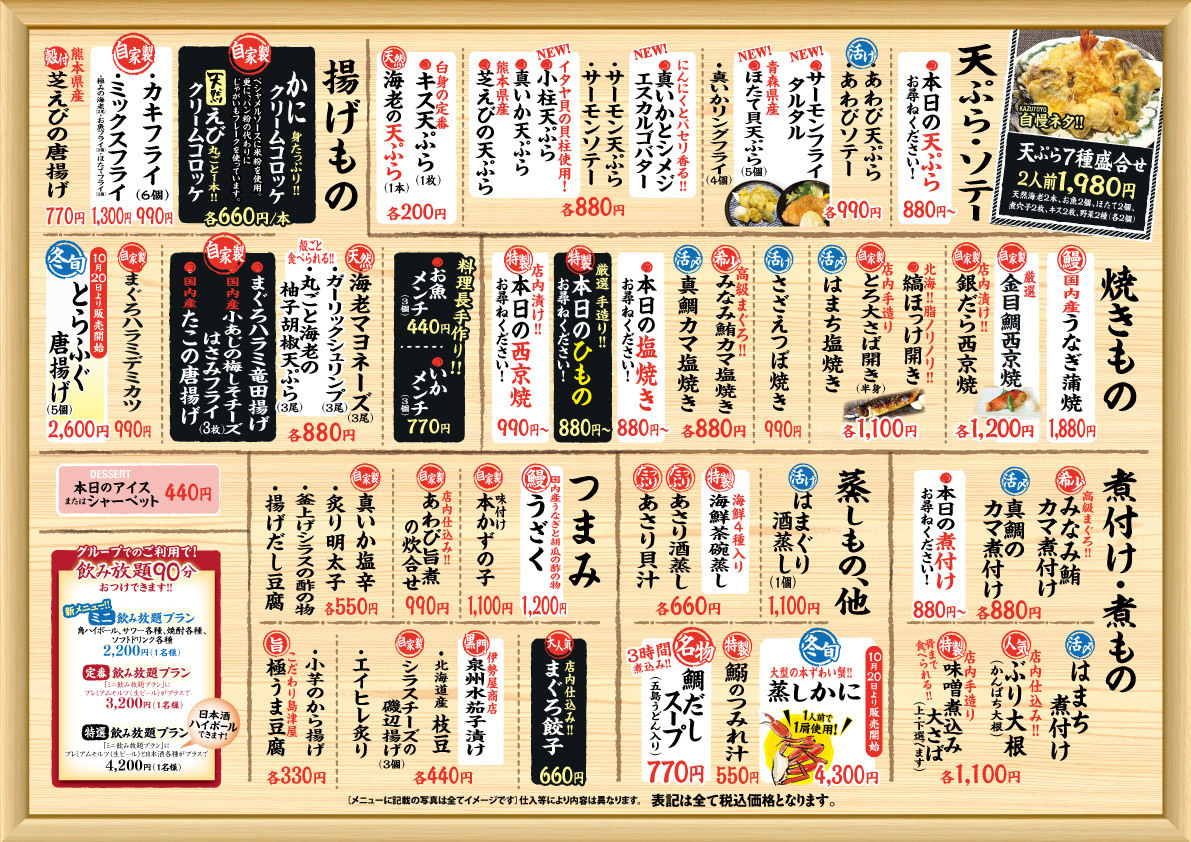 ※飲み放題につきましては、グループで飲み放題をつけることができます(90分制)
